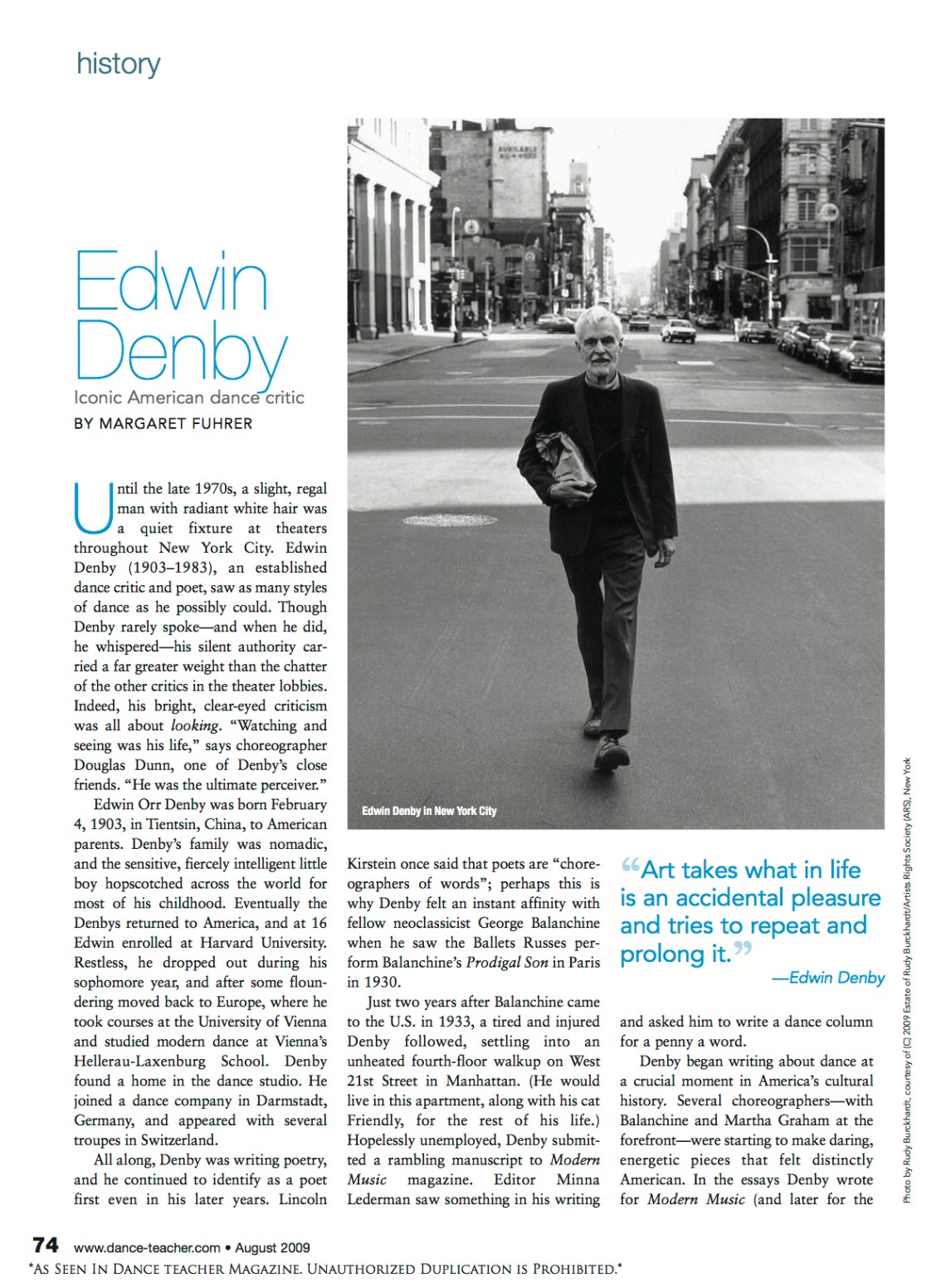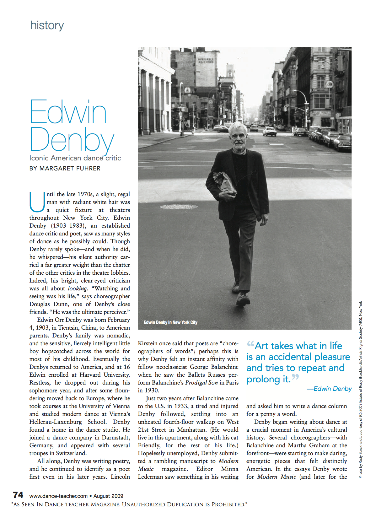 Edwin Denby Margaret FuhrerAugust 1, 2009June 17, 2012Dance Teacher, Profiles Post navigation Next Share this: Click to share on X (Opens in new window) X Click to share on Facebook (Opens in new window) Facebook Like Loading... Related