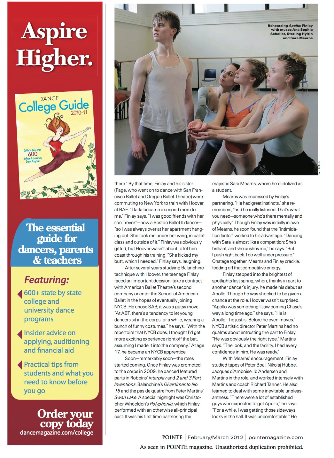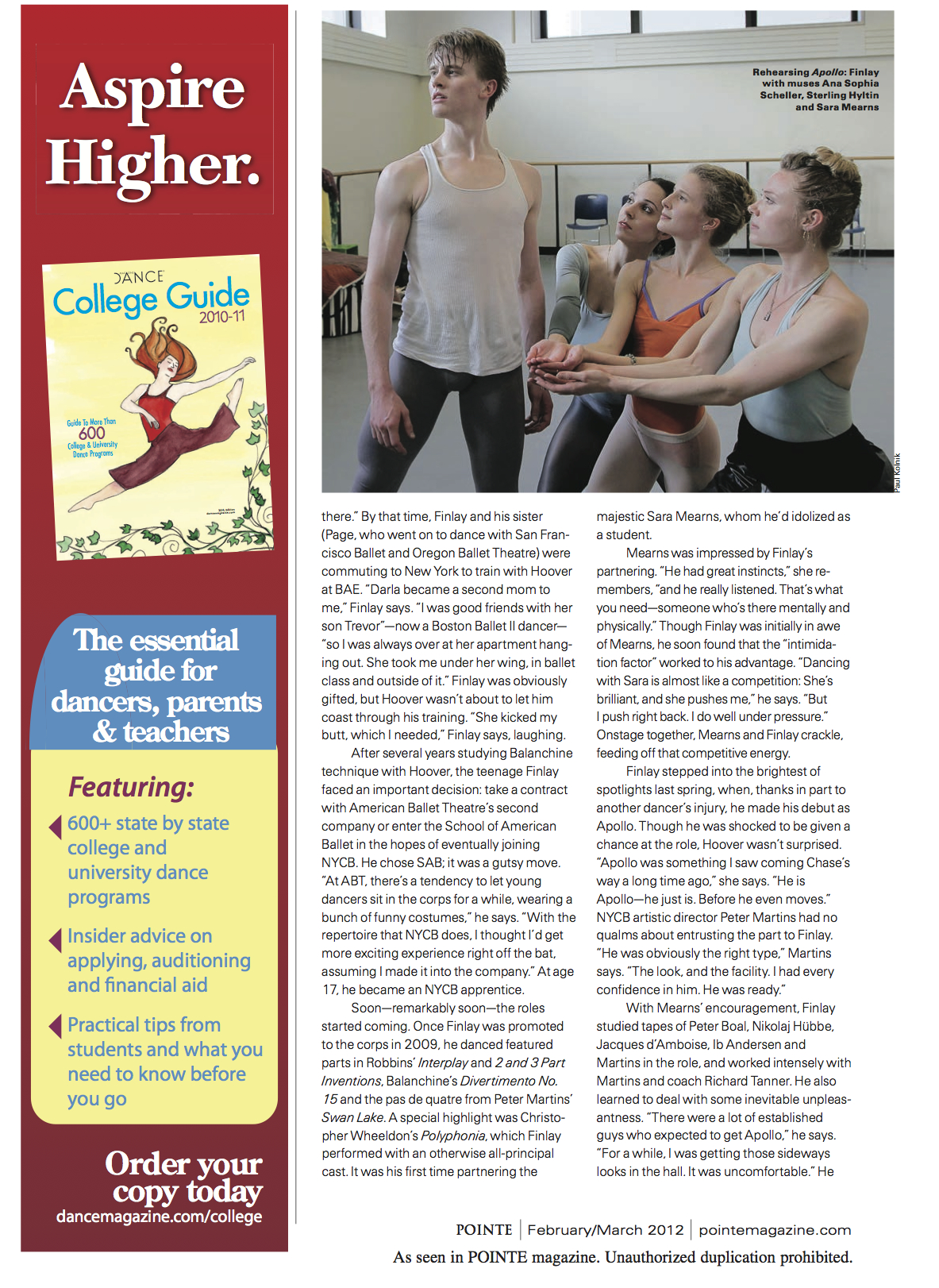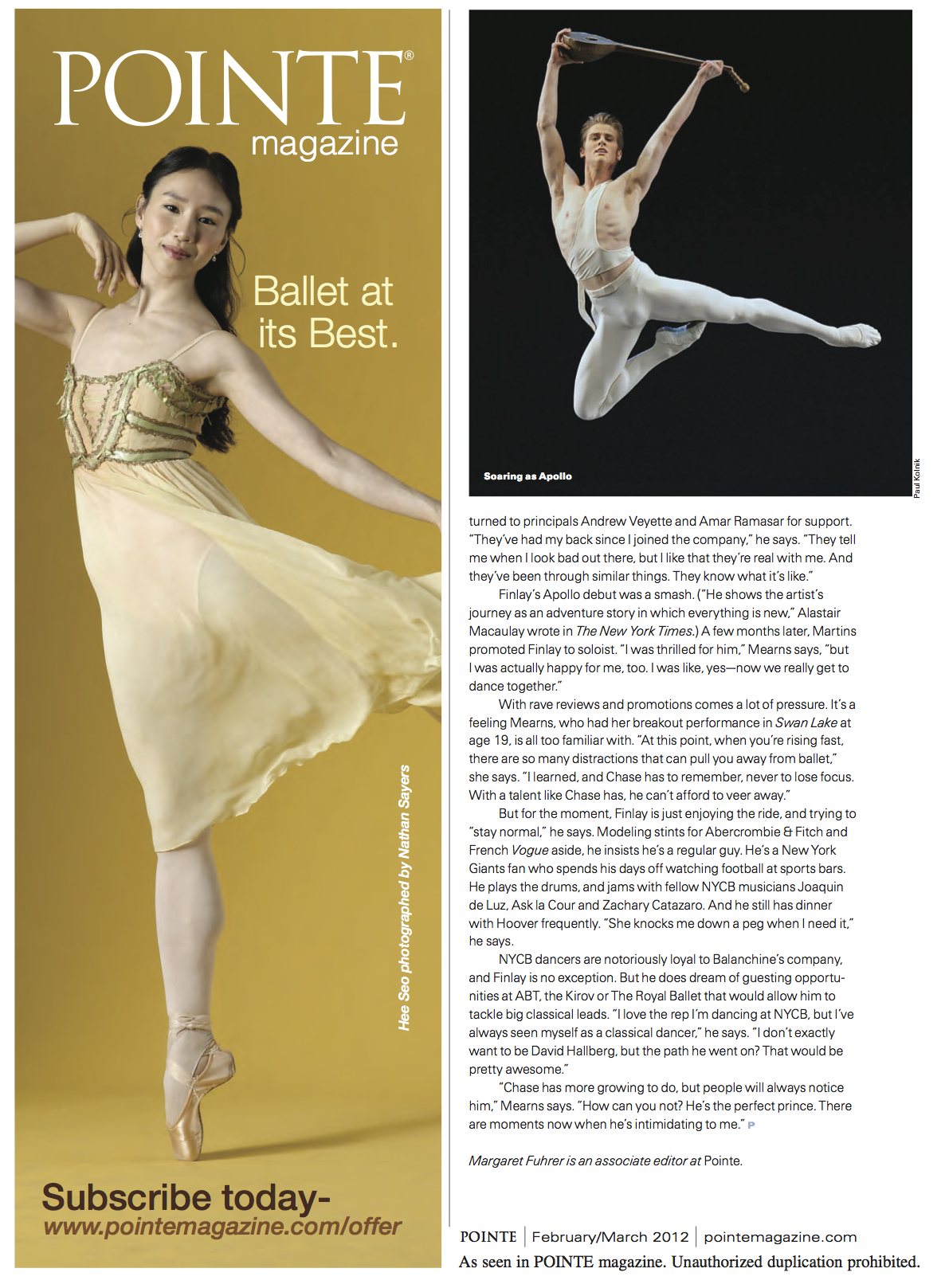 Chase Finlay Margaret FuhrerFebruary 15, 2012June 17, 2012Cover stories, Favorites, Pointe, Profiles Post navigation PreviousNext Share this: Click to share on X (Opens in new window) X Click to share on Facebook (Opens in new window) Facebook Like Loading... Related
