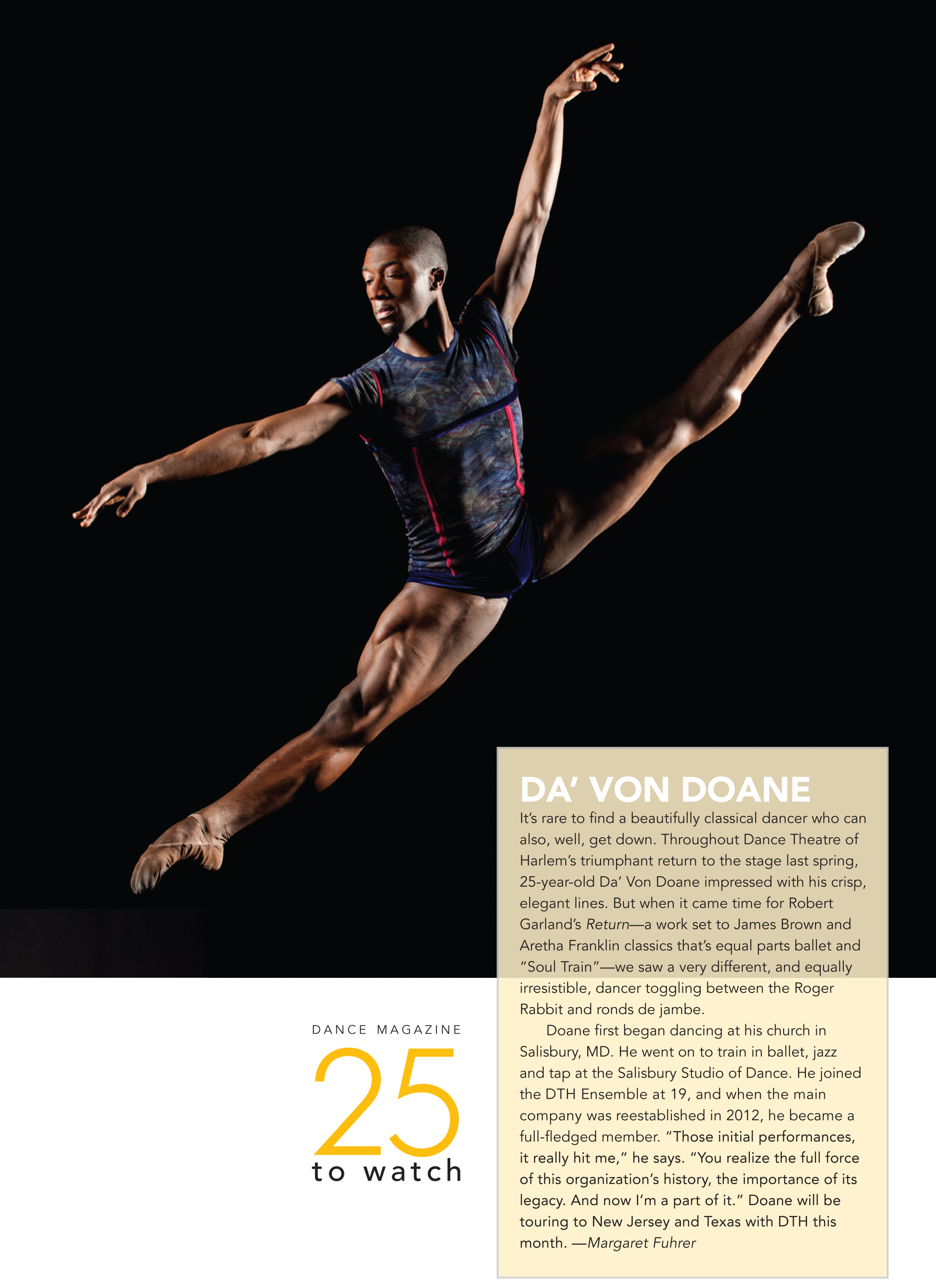 25 to Watch: Da’ Von Doane Margaret FuhrerJanuary 2, 2014Dance Magazine, Profiles Post navigation PreviousNext Share this: Click to share on X (Opens in new window) X Click to share on Facebook (Opens in new window) Facebook Like Loading... Related