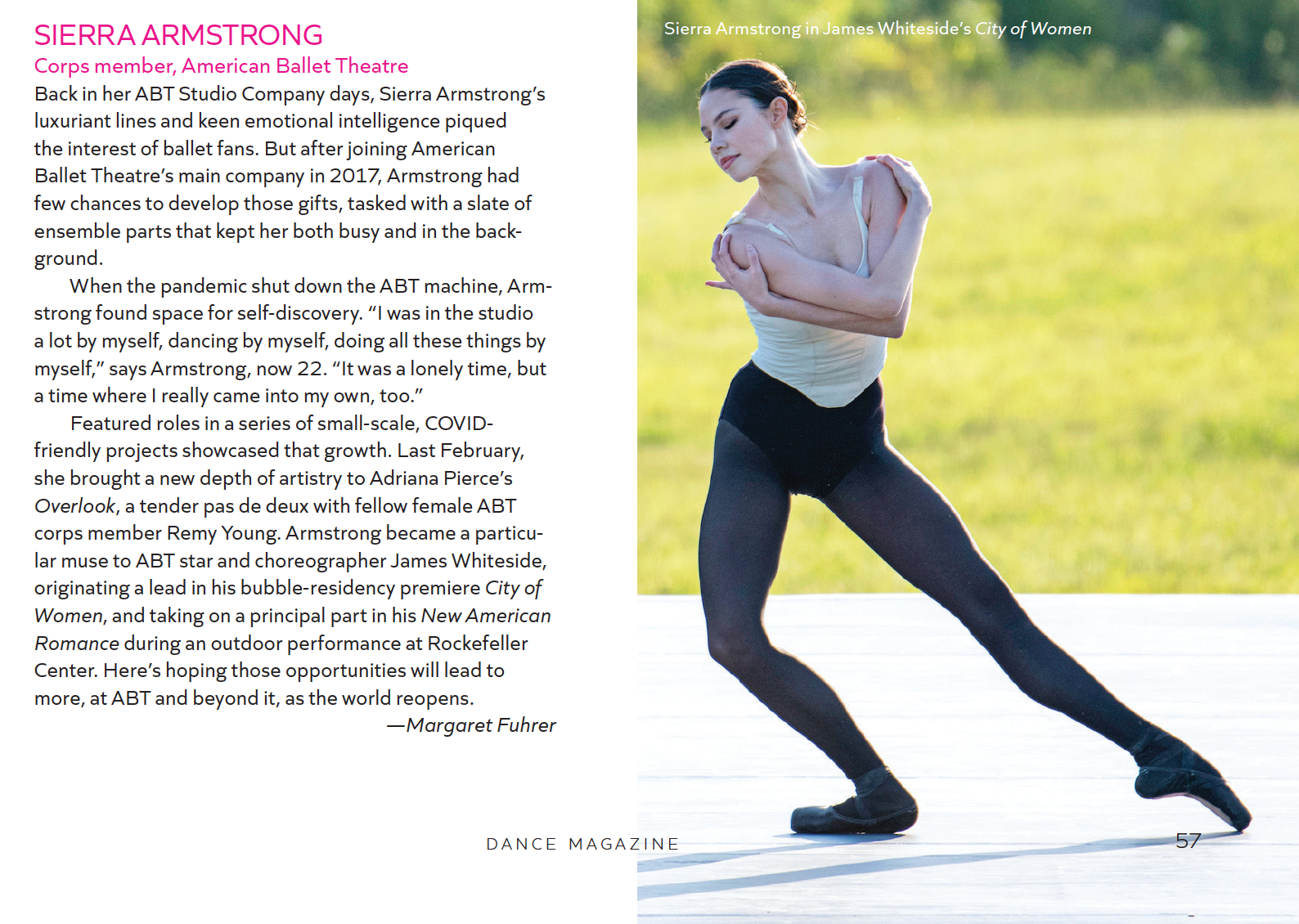 25 to Watch: Sierra Armstrong (Dance Magazine) Margaret FuhrerDecember 21, 2021April 18, 2022Dance Magazine, Profiles Post navigation PreviousNext Read this story on dancemagazine.com. Share this: Click to share on X (Opens in new window) X Click to share on Facebook (Opens in new window) Facebook Like Loading... Related